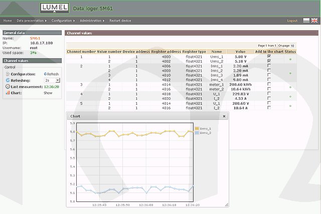 • Vizualizace a současná archivace dat podle požadavků užavatele a konfigurace (grafy, tabulky, synoptické mapy) pro každý web prohlížeč.