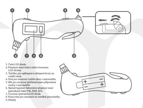 Pneuměřič digitální EMERGENCY 5 v 1, 5 funkcí, EXTOL PREMIUM