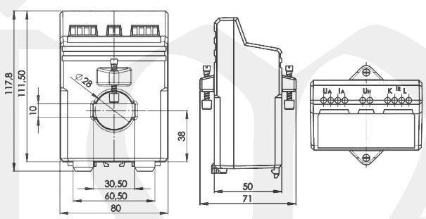 | Pomocné napájení trafa | 230Vac |